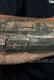 卡通风格的彩色骷髅与头盔手臂纹身图案