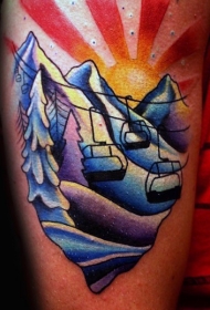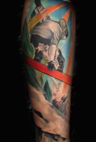 彩色插画风格很酷的滑雪运动手臂纹身图案