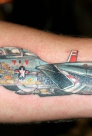 好看的彩色现代战斗机手臂纹身图案