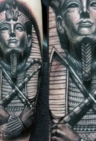 黑灰风格可怕的埃及法老雕像手臂纹身图案