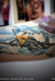 new school彩色的二战战斗机手臂纹身图案