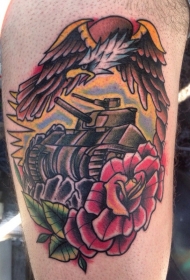 old school彩色坦克与玫瑰和鹰手臂纹身图案