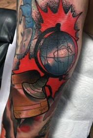 old school彩色地球仪与书籍手臂纹身图案