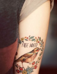 手臂上一款漂亮的小鸟纹身
