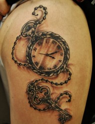 手臂上好看的钥匙和怀表纹身