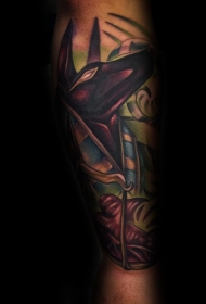 插画风格彩色埃及神阿努比斯手臂纹身图案