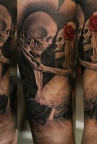 骷髅婚礼夫妇写实彩色手臂纹身图案