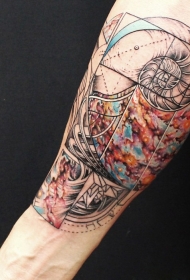 水彩风格的彩色女性手臂纹身图案