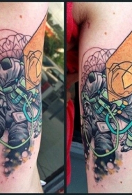超现实主义风格的彩色宇航员与几何手臂纹身图案