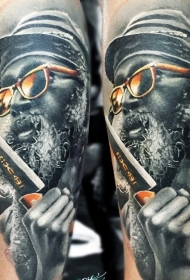 男歌手肖像彩色手臂纹身图案