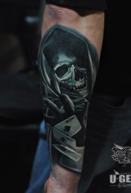 插画风格彩色骷髅和扑克牌手臂纹身图案