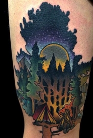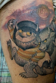 old school半色猫半美人鱼彩绘手臂纹身图案
