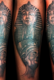 埃及主题彩色狮身人面像与女王手臂纹身图案
