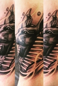 点刺风格的古埃及神阿努比斯手臂纹身图案