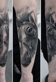 手臂纹黑灰插画风格的野猪头像纹身图案