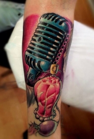 漂亮逼真的彩色玫瑰手臂纹身图案