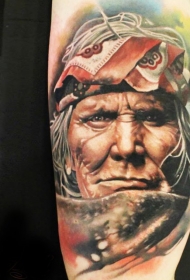 写实风格的彩色疯狂女人肖像手臂纹身图案