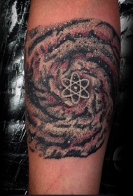 雕刻风格黑色点刺圆形沙漠手臂纹身图案