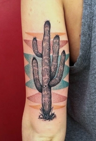 插画风格彩色点刺仙人掌手臂纹身图案