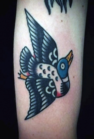 old school彩色鸭子手臂纹身图案