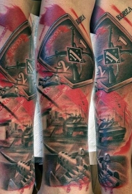 手臂彩色的各种军事武器手臂纹身图案