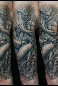 写实风格的彩色魔鬼石像手臂纹身图案