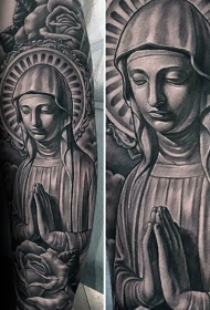 石雕风格圣母玛利亚和玫瑰手臂纹身图案