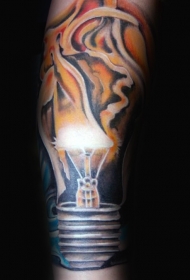写实风格彩色的燃烧电灯泡手臂纹身图案