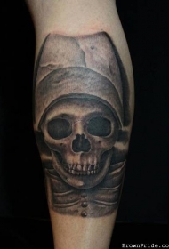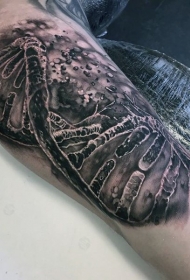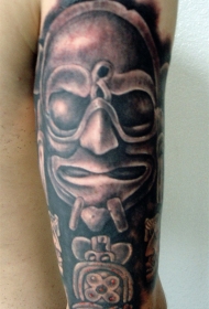 雕刻风格的黑色的狐狸与骷髅和蝴蝶手臂纹身图案