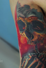 手臂令人毛骨悚然的骷髅蜡烛和花卉纹身图案