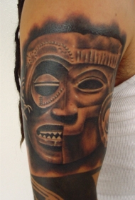 非常逼真的彩色部落女孩肖像手臂纹身图案