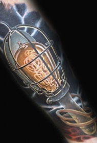 逼真的彩色灯泡铁罩手臂纹身图案