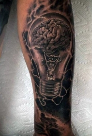 黑灰色的大脑和灯泡结合手臂纹身图案