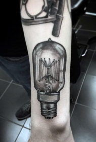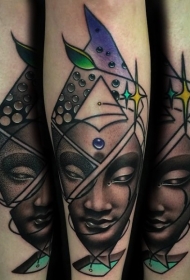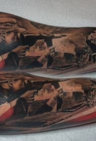 写实风格的彩色男性肖像和娃娃手臂纹身图案