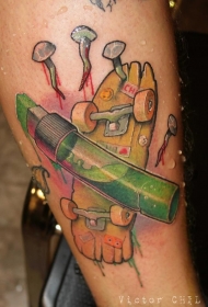 手臂卡通风格彩色爱德华剪刀手纹身图案