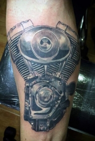大腿彩色摩托车发动机与犀牛头部纹身图案
