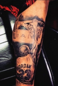 引人注目的彩色迈克尔乔丹肖像手臂纹身图案