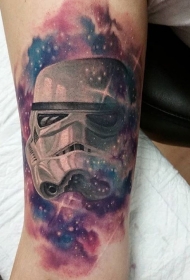 new school插画风格彩色风暴兵头盔和星空手臂纹身图案