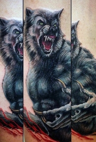 惊艳的插画风格血腥狼人手臂纹身图案