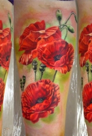 写实风格的彩色罂粟花手臂纹身图案