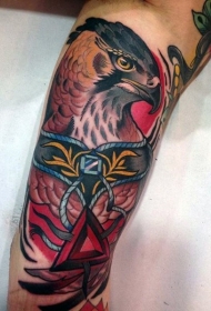 漂亮的彩色光荣鹰手臂纹身图案
