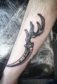 设计独特的雕刻风格神秘刀和鹿角手臂纹身图案
