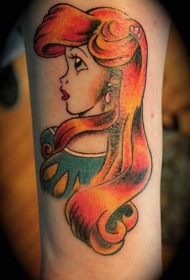 old school彩色艾莉尔美人鱼手臂纹身图案