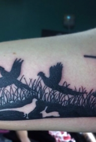 手臂黑色的猎人射鸭子剪影纹身图案