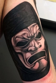 手臂异常组合黑色半写实半几何的猴头纹身图案