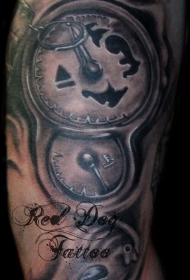 神秘逼真的彩色女性肖像和玫瑰星空手臂纹身图案