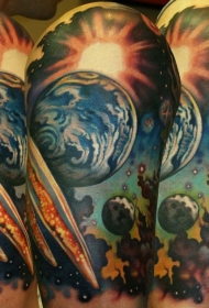 怪异的半鱼尾半山羊彩色手臂纹身图案