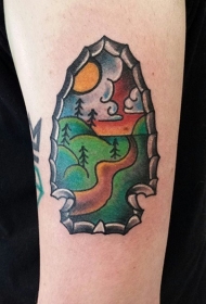 有趣的彩色幻想箭头与月亮手臂纹身图案