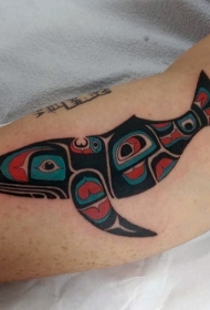 手臂独特的设计彩色部落风格鲸鱼纹身图案