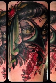 手臂彩色的爬行神秘女巫纹身图案